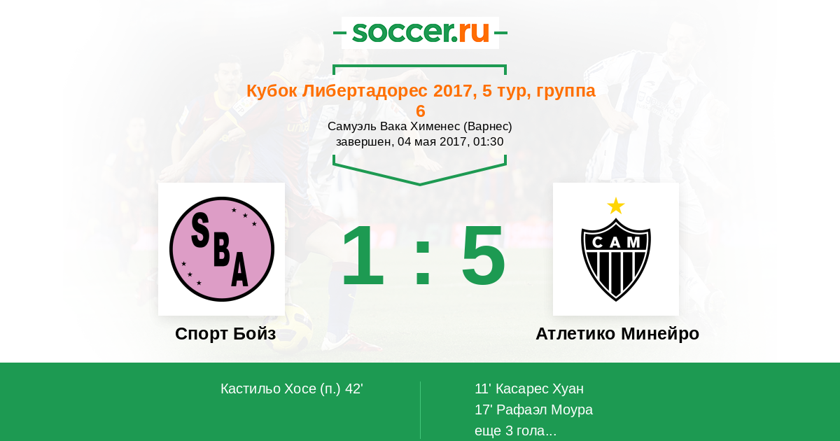 Протокол матча Спорт Бойз против Атлетико Минейро