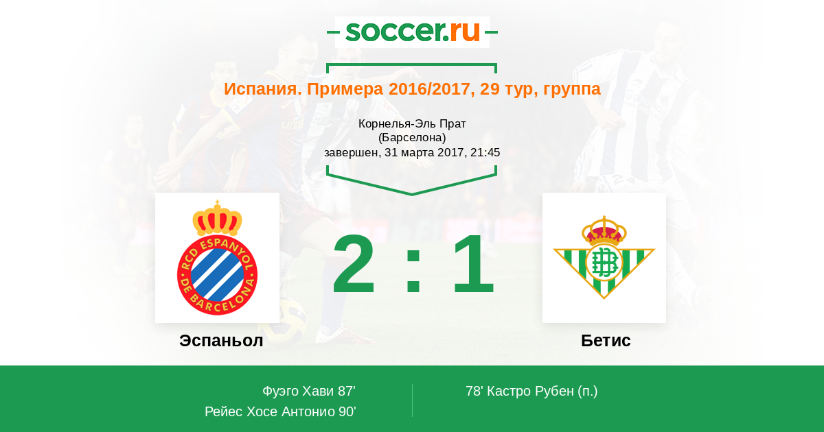 Протокол матча Эспаньол против Бетис