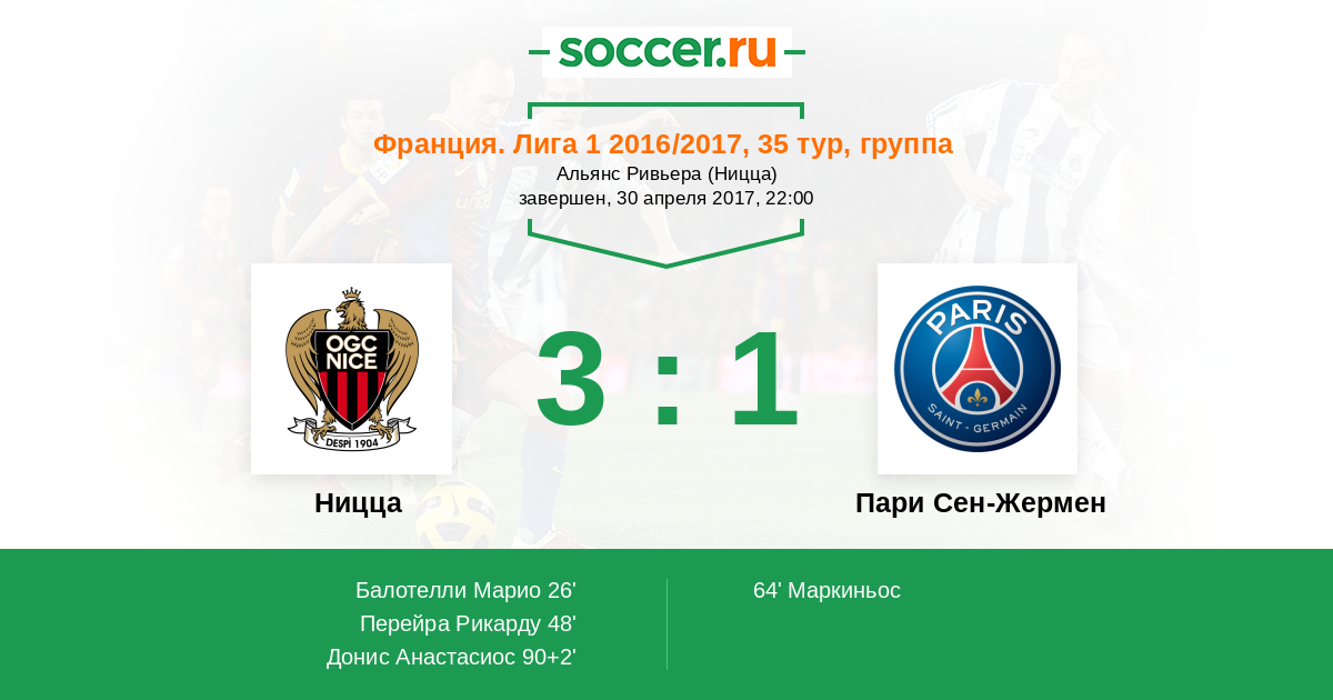 Протокол матча Ницца против Пари Сен-Жермен