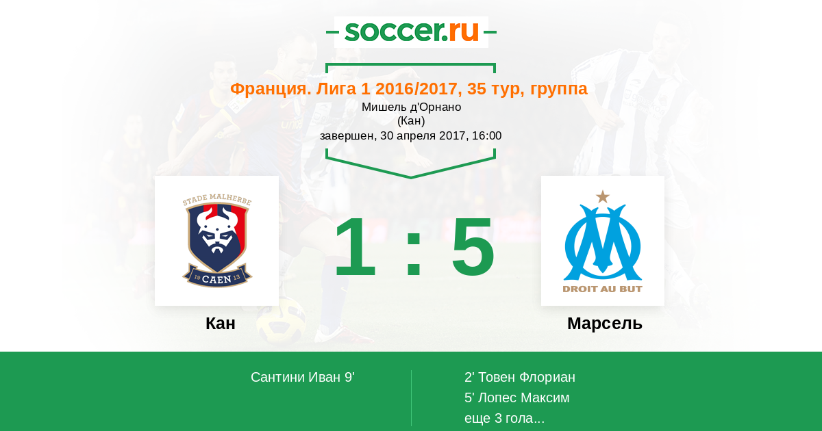 Протокол матча Кан против Марсель