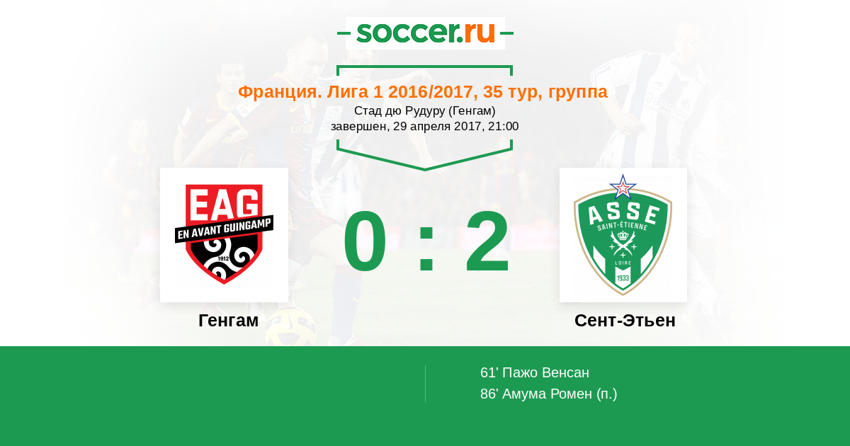 Протокол матча Генгам против Сент-Этьен