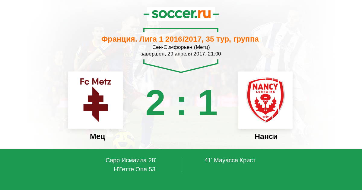 28' (1:0) Сарр Исмаила (26) (Н'Гетте Опа (11))