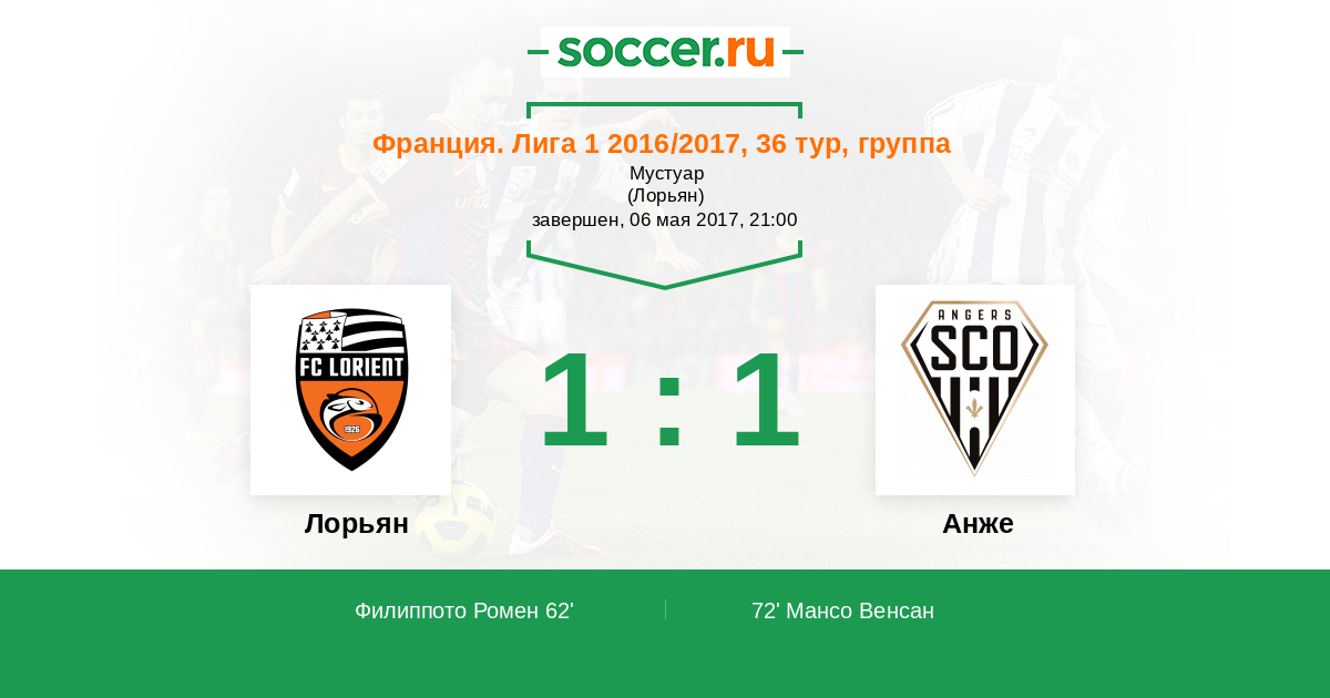 Протокол матча Лорьян против Анже