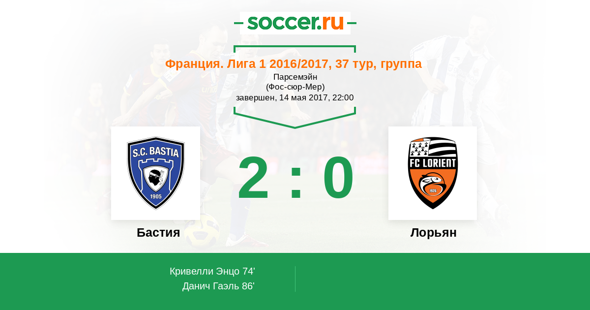 Протокол матча Бастия против Лорьян