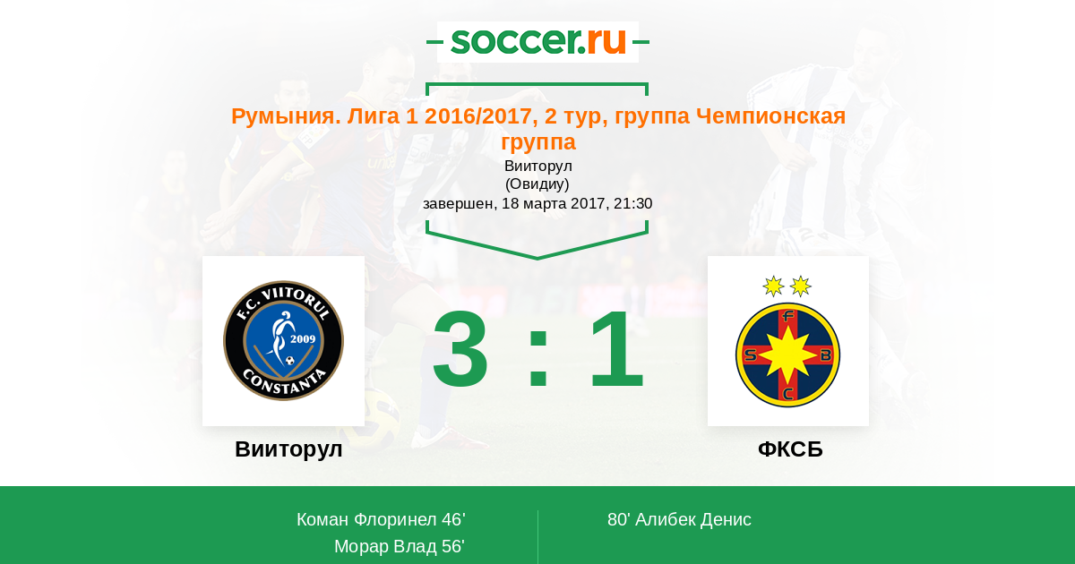 Протокол матча Вииторул против Стяуа