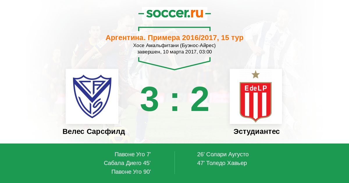 Протокол матча Велес Сарсфилд против Эстудиантес