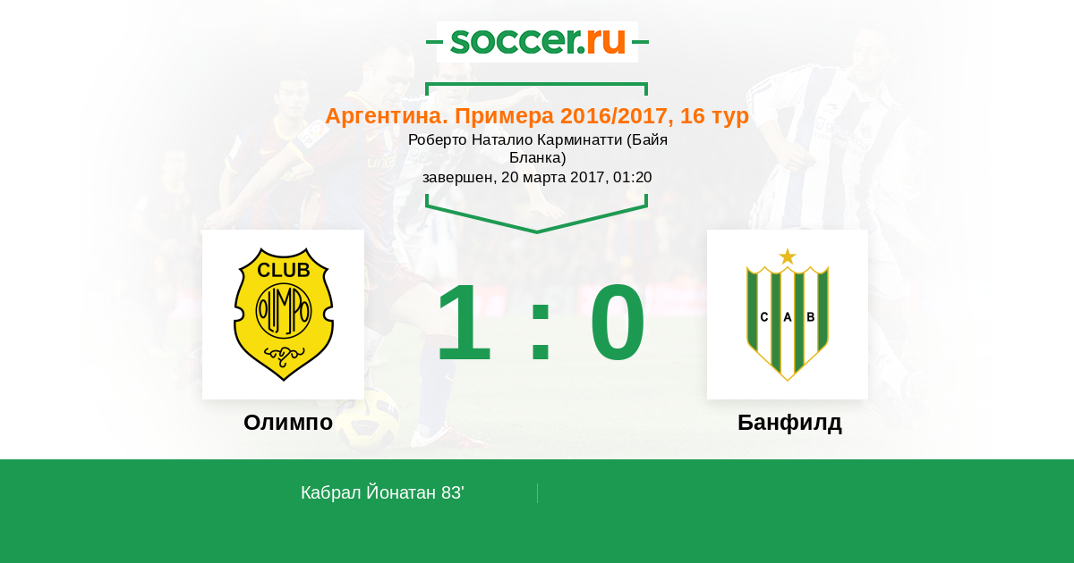 Протокол матча Олимпо против Банфилд