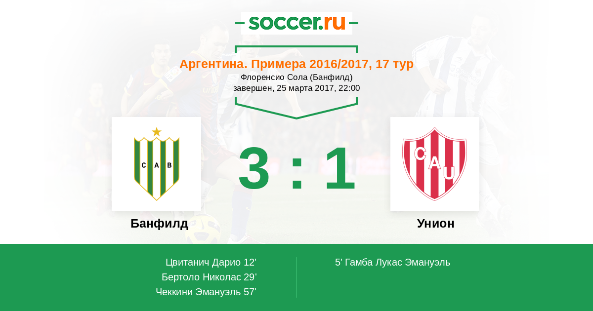 Протокол матча Банфилд против Унион