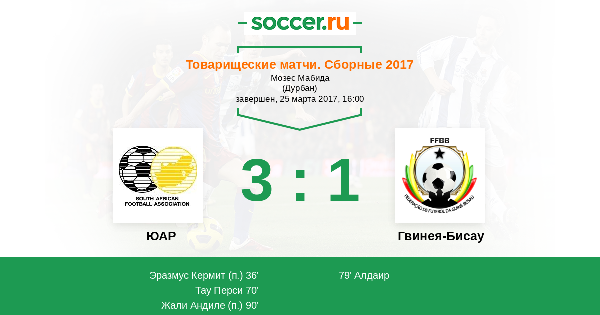 Протокол матча ЮАР против Гвинея-Бисау