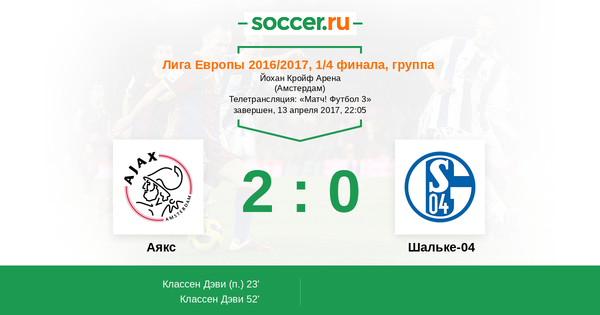 52' (2:0) Классен Дэви (10) (Клюйверт Джастин (12))