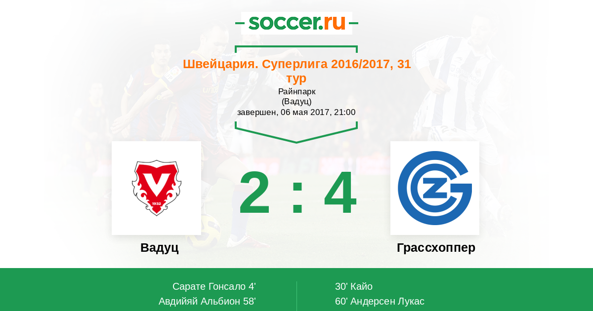 Протокол матча Вадуц против Грассхоппер