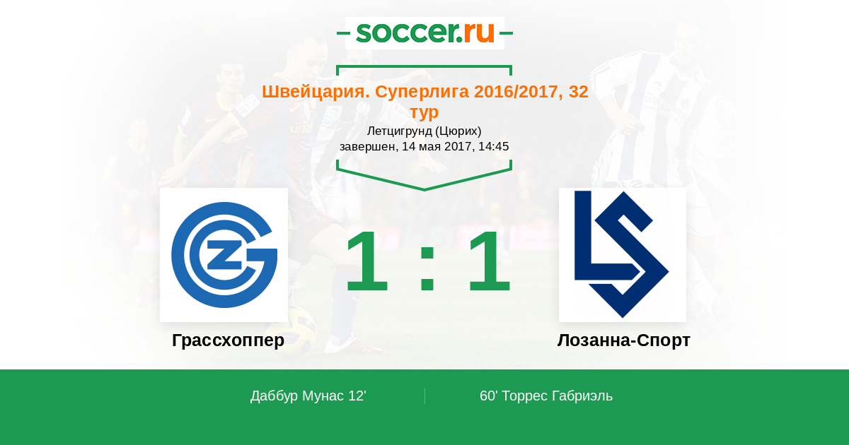 Протокол матча Грассхоппер против Лозанна-Спорт
