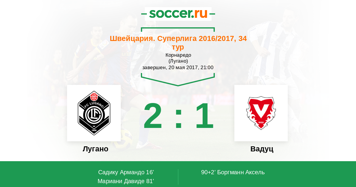 Протокол матча Лугано против Вадуц