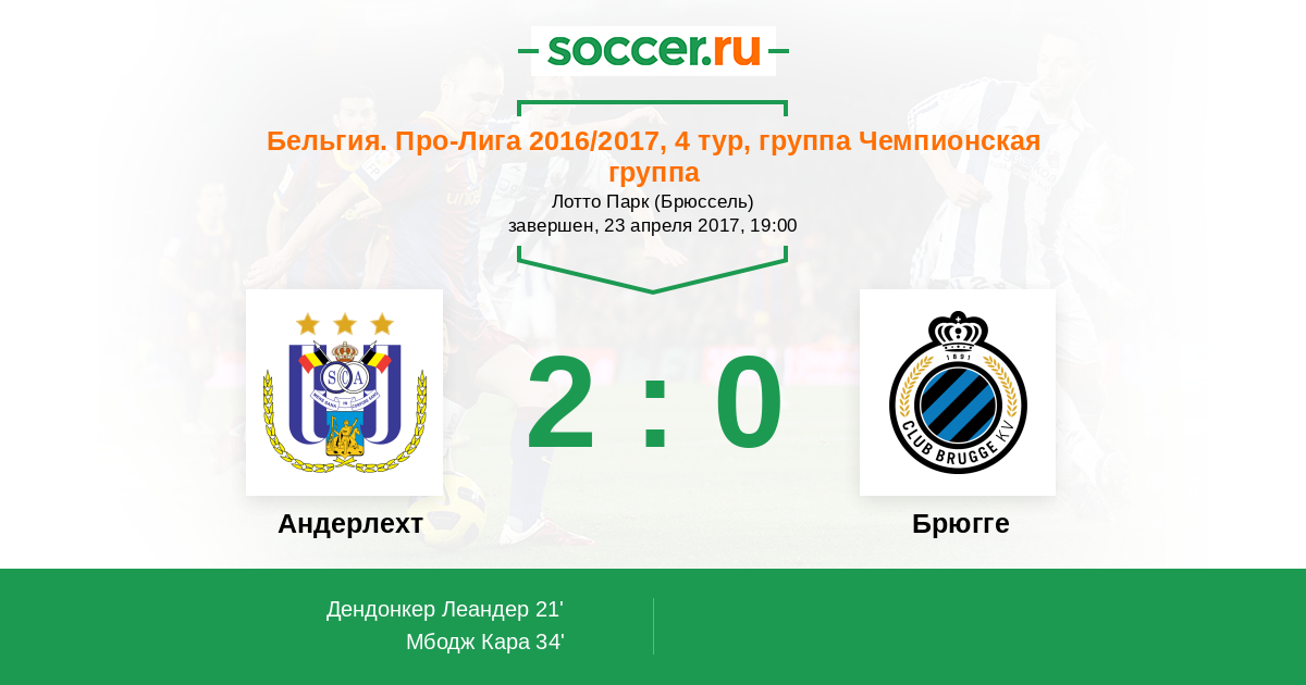 21' (1:0) Дендонкер Леандер (32) (Тилеманс Юри (31))