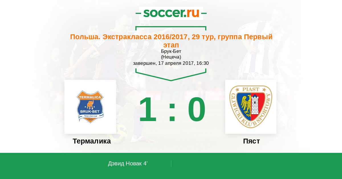 Протокол матча Термалика против Пяст
