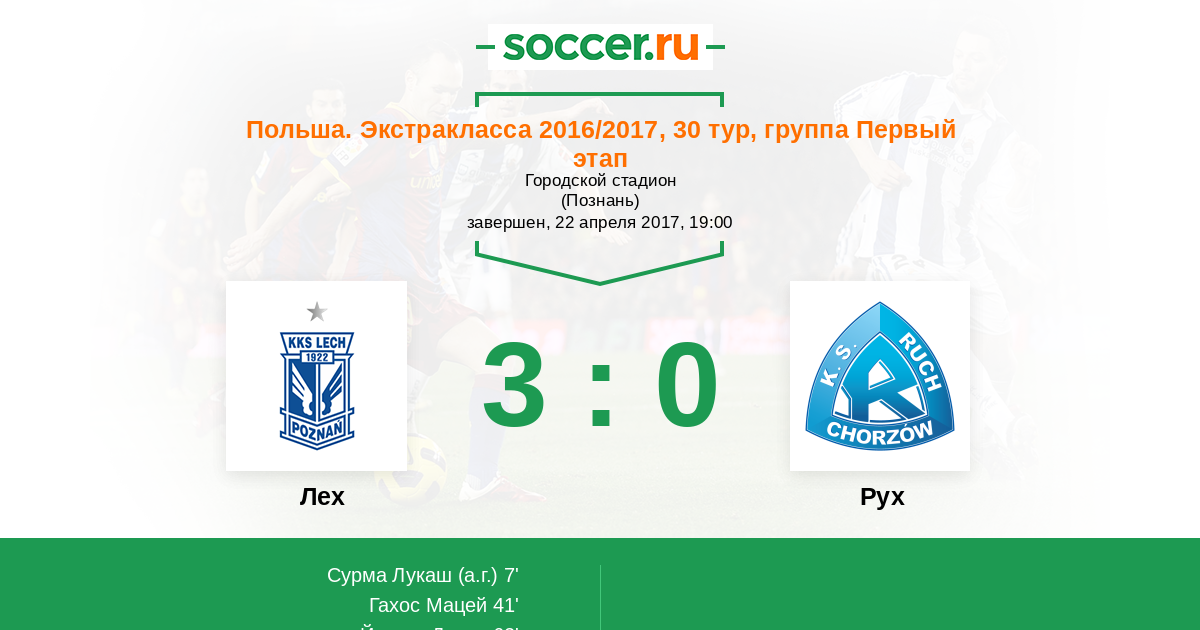 Протокол матча Лех против Рух