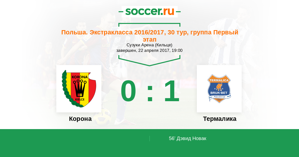 Протокол матча Корона против Термалика