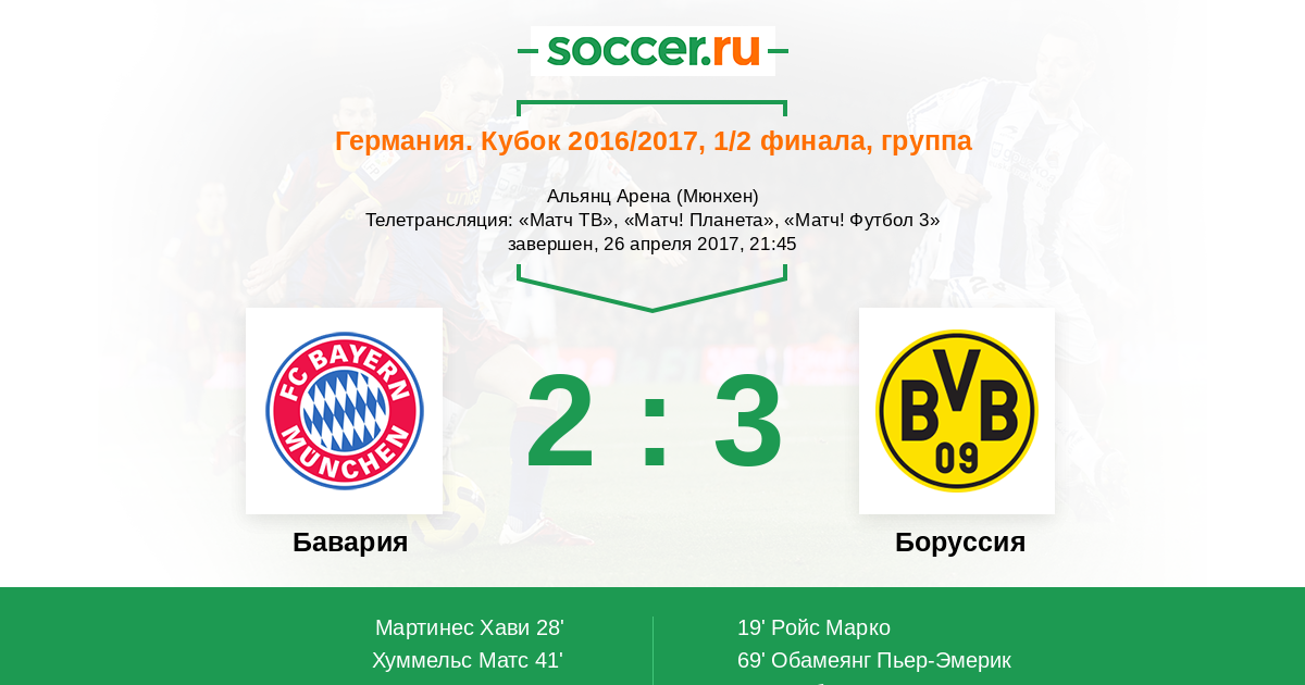 Протокол матча Бавария против Боруссия