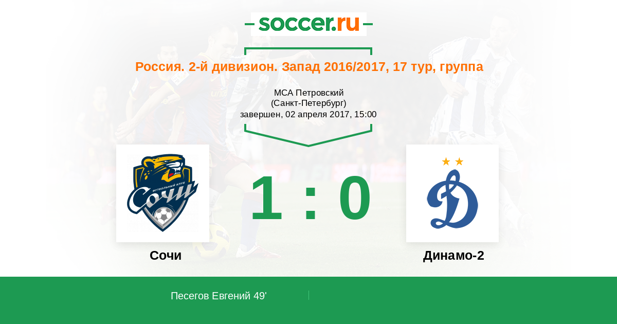 Протокол матча Динамо СПб против Динамо-2
