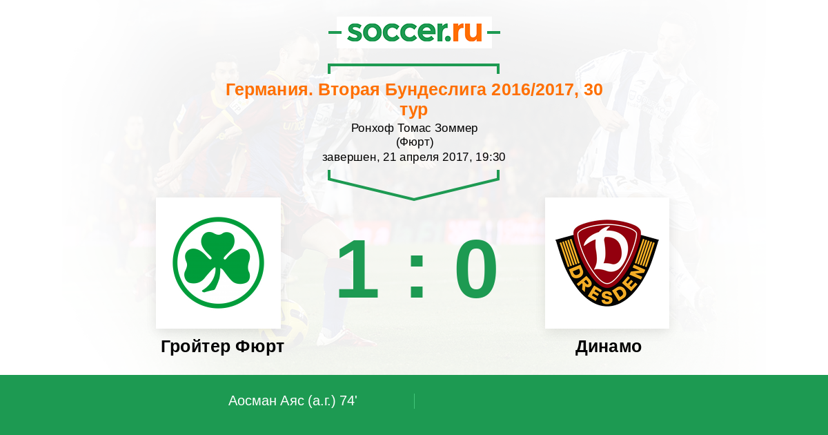 Протокол матча Гройтер Фюрт против Динамо