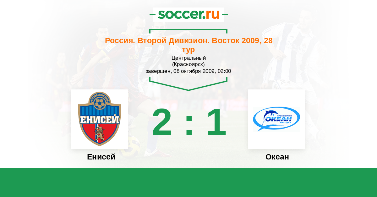Россия. 2-й дивизион. Восток 20.07.2009 Океан Логотип футбольный клуб Океан (Находка) 0:3 Логотип футбольный клуб Енисей (Красноярск) Енисей