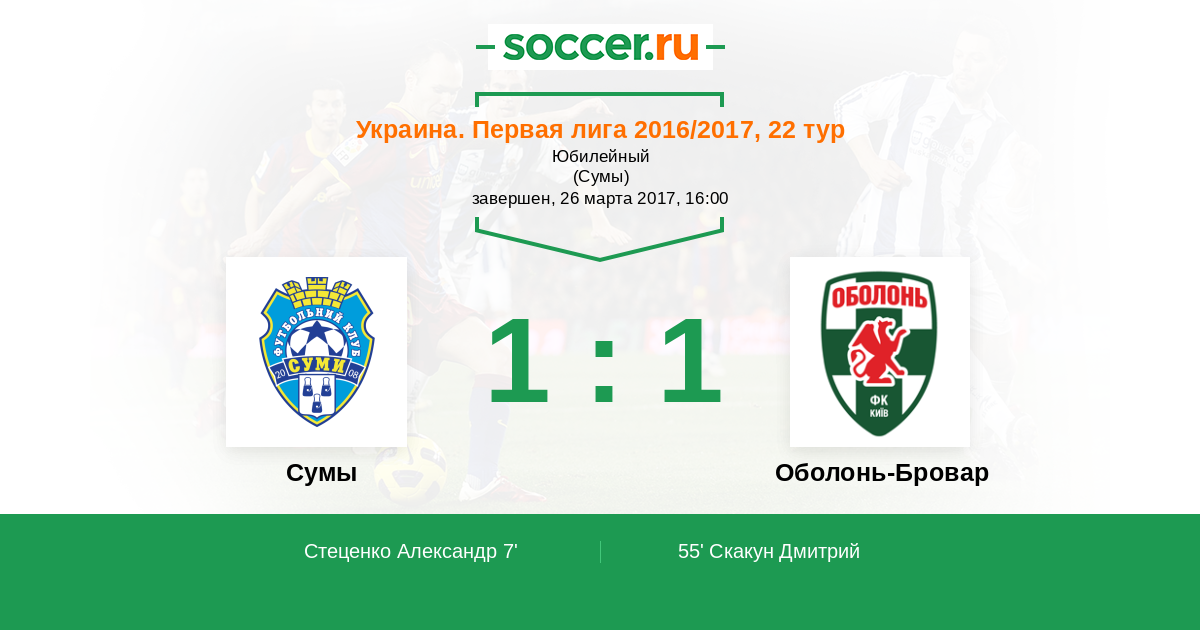 Протокол матча Сумы против Оболонь-Бровар