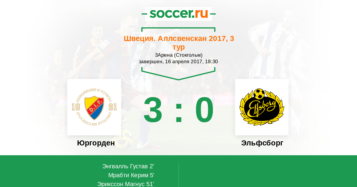 Протокол матча Юргорден против Эльфсборг