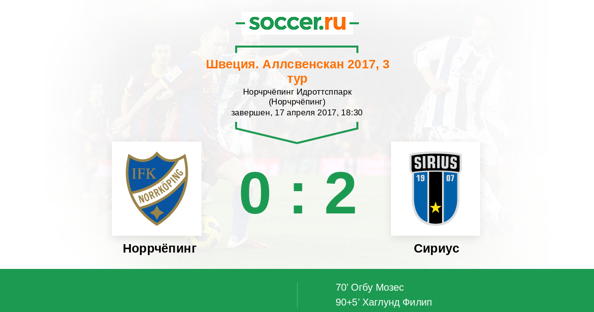 70' (0:1) Огбу Мозес (90) (Йеспер Арвидссон (18))