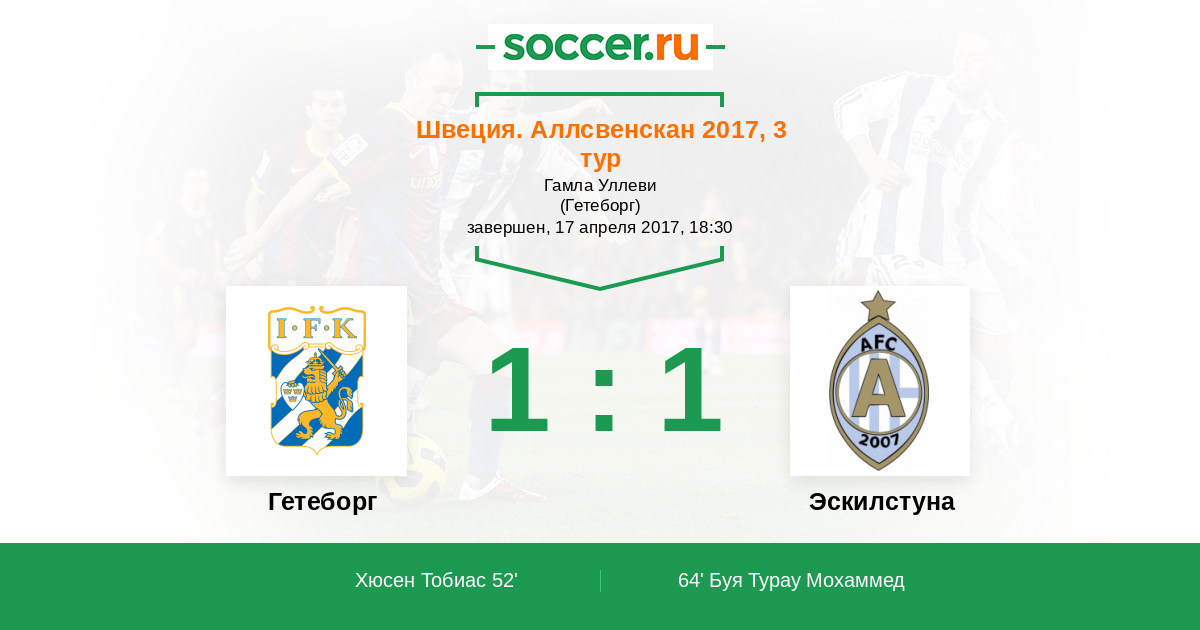 Протокол матча Гетеборг против Эскилстуна