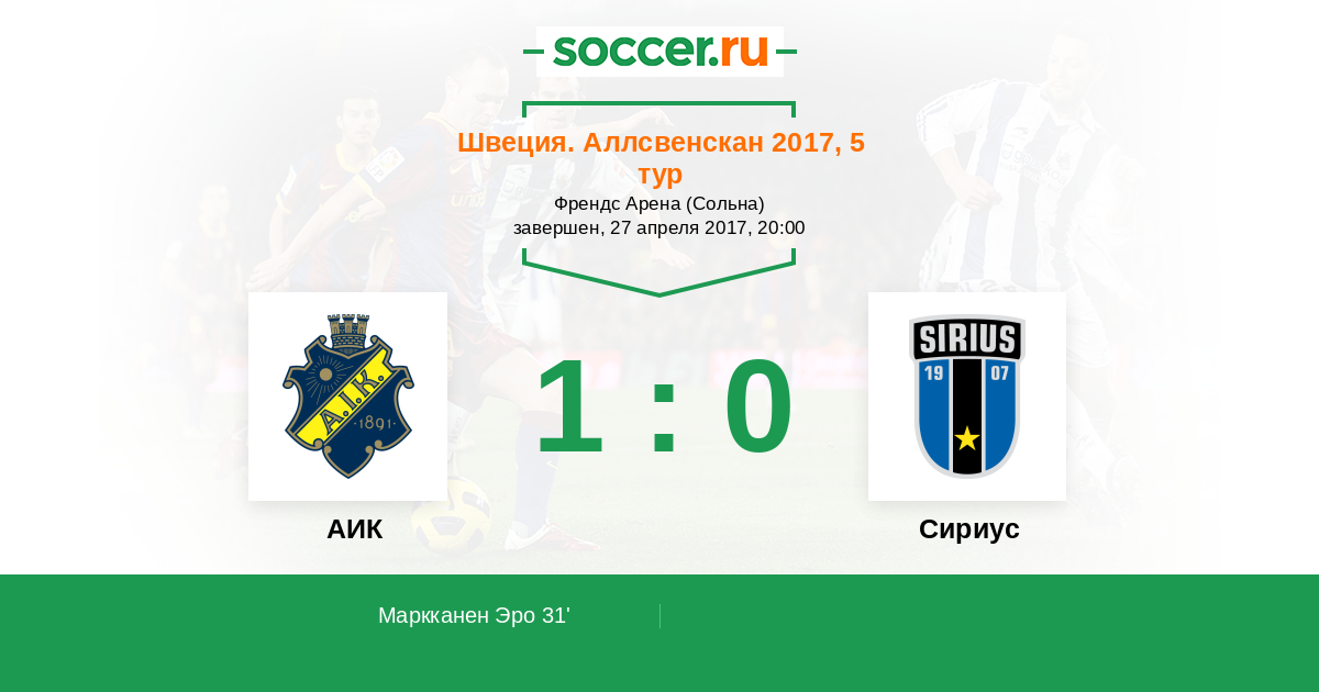 Протокол матча АИК против Сириус
