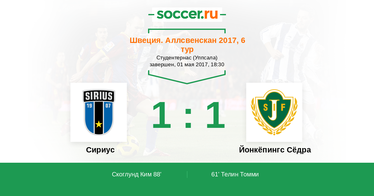 Протокол матча Сириус против Йонкёпингс Сёдра