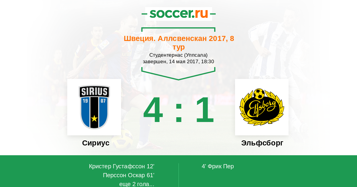 Протокол матча Сириус против Эльфсборг