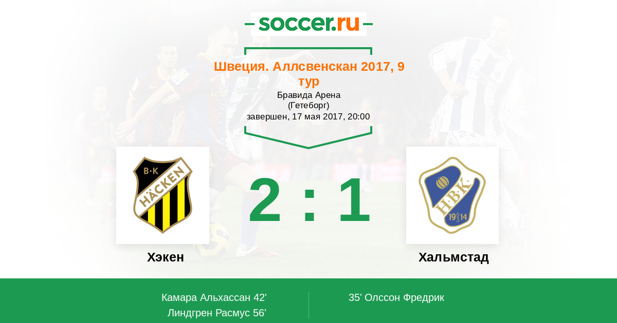Протокол матча Хэкен против Хальмстад
