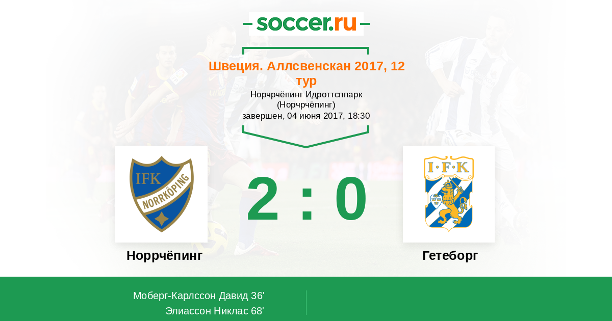 Протокол матча Норрчёпинг против Гетеборг