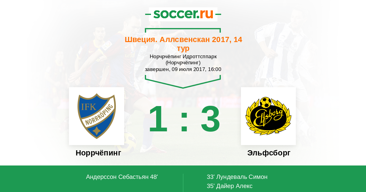 Протокол матча Норрчёпинг против Эльфсборг
