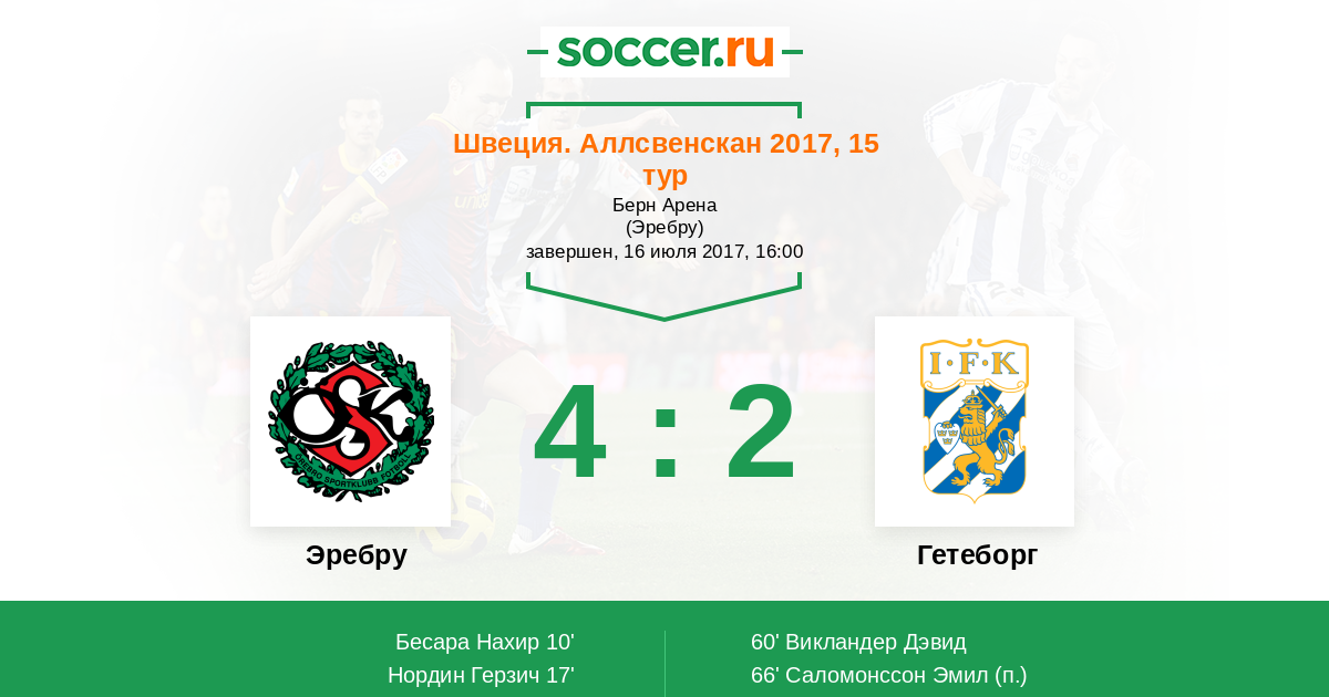 10' (1:0) Бесара Нахир (10) (Мартенссон Йохан (17))