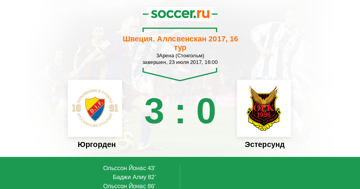 Протокол матча Юргорден против Эстерсунд