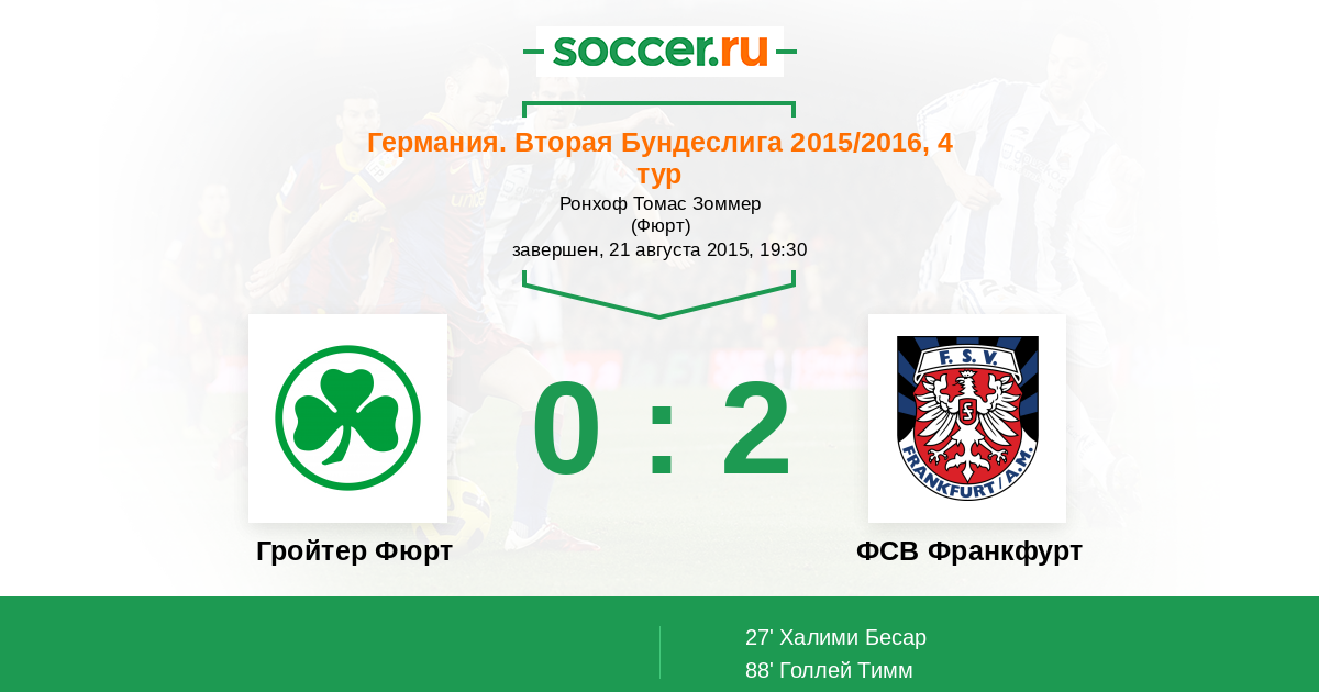 Протокол матча Гройтер Фюрт против ФСВ Франкфурт