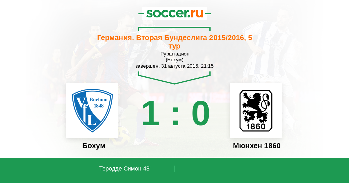 Протокол матча Бохум против Мюнхен 1860