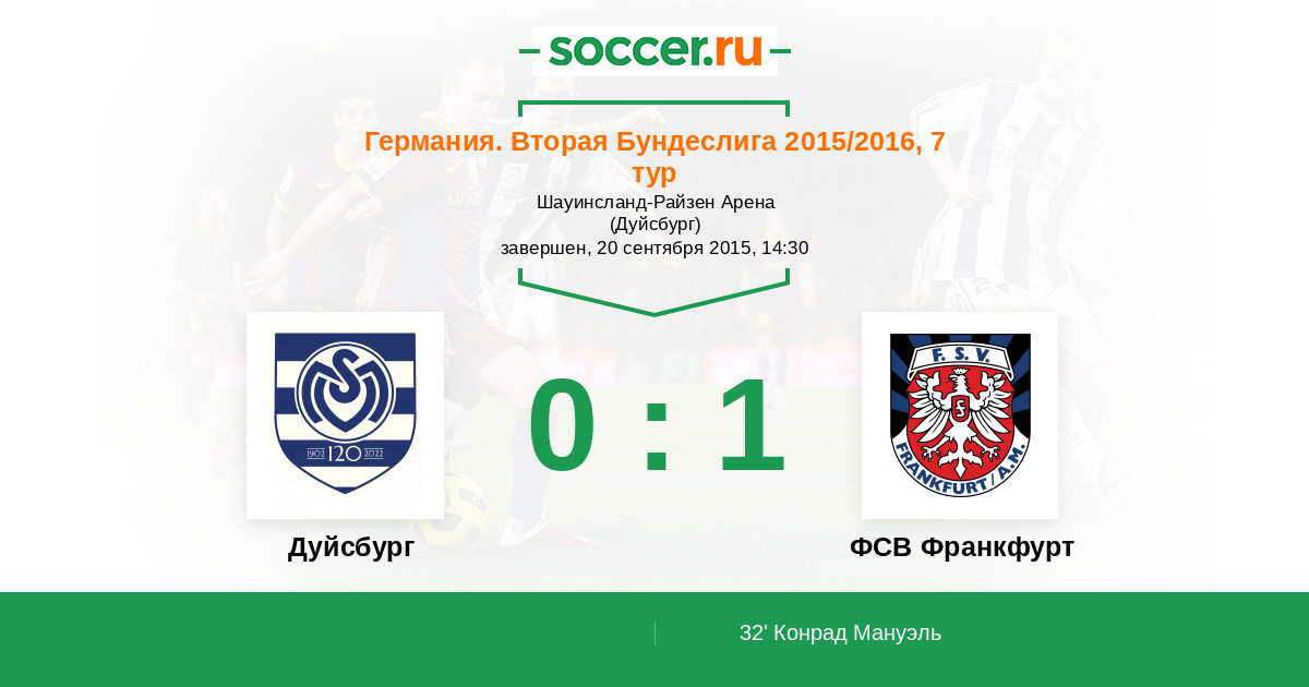 Протокол матча Дуйсбург против ФСВ Франкфурт