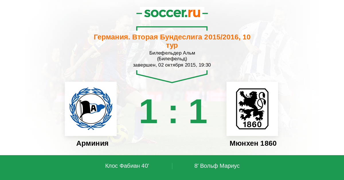 Протокол матча Арминия против Мюнхен 1860