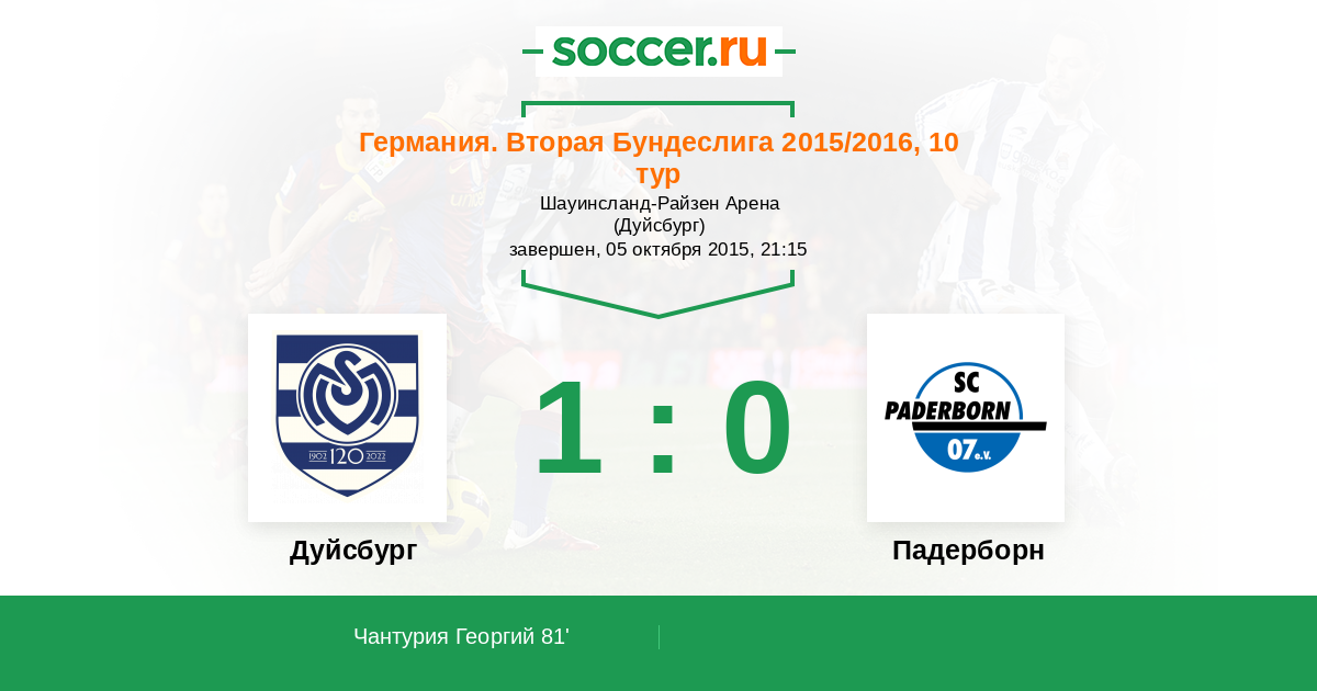 Протокол матча Дуйсбург против Падерборн