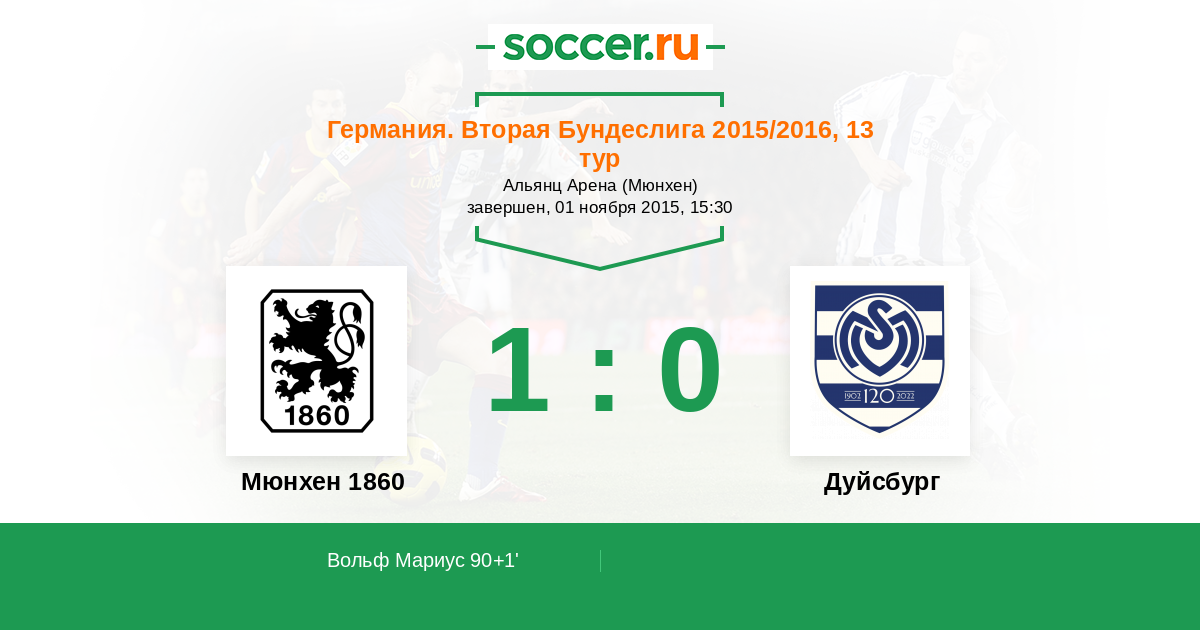 Протокол матча Мюнхен 1860 против Дуйсбург