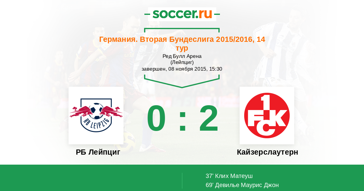 Протокол матча РБ Лейпциг против Кайзерслаутерн