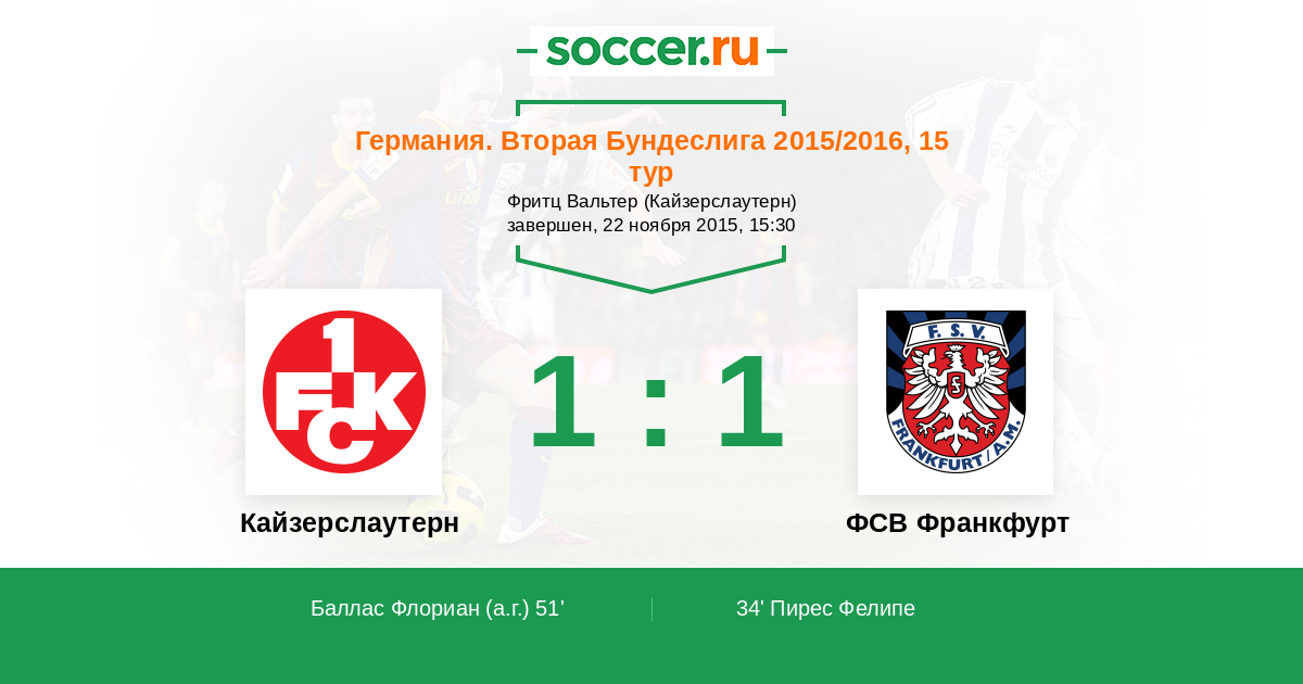 Протокол матча Кайзерслаутерн против ФСВ Франкфурт