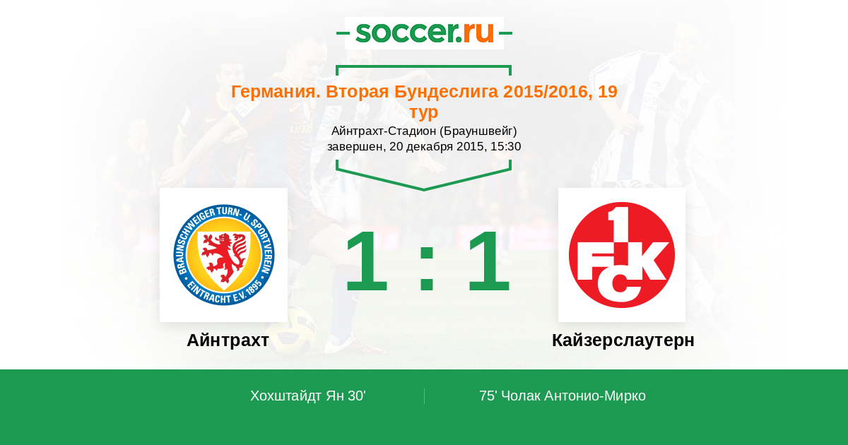 Протокол матча Айнтрахт против Кайзерслаутерн