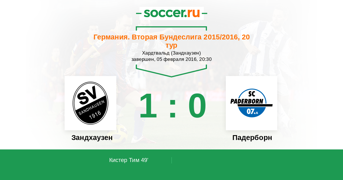 Протокол матча Зандхаузен против Падерборн