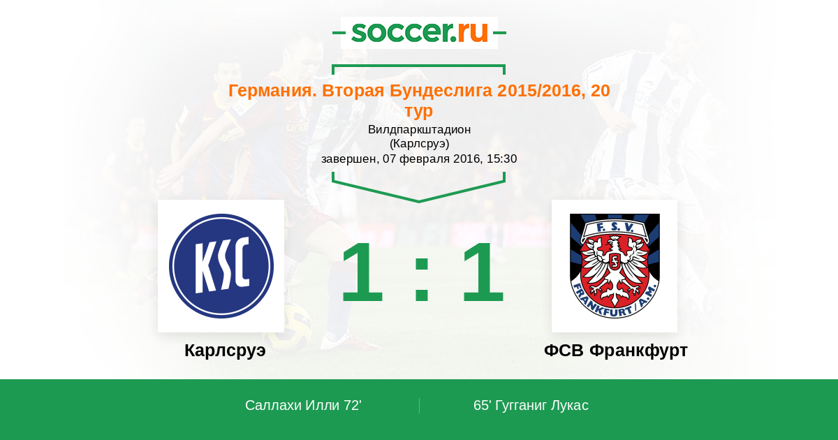 Протокол матча Карлсруэ против ФСВ Франкфурт