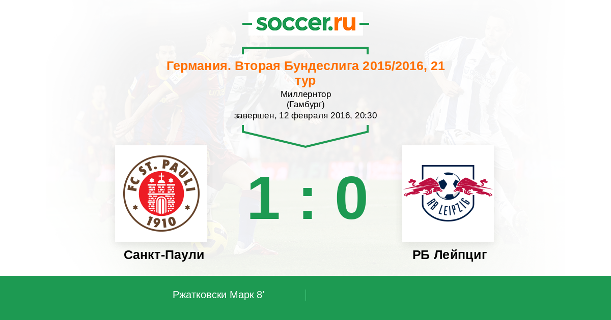 Протокол матча Санкт-Паули против РБ Лейпциг