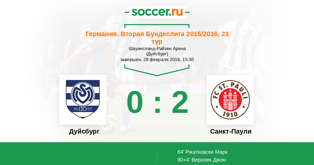 Протокол матча Дуйсбург против Санкт-Паули